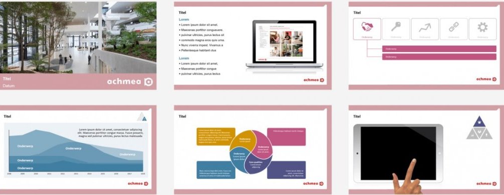 Achmea asked us to develop a PowerPoint corporate presentation with a lot of complex charts and diagrams. The presentation had to be designed according to Achmea's corporate identity guidelines.