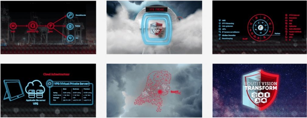 Every year RoutIT asks us to develop a series of 12 event presentations for their event: RoutIT Vision. These presentations, which need to be projected onto a 10 by 4 meterscreen, must look professional, inspiring and above all impressive.