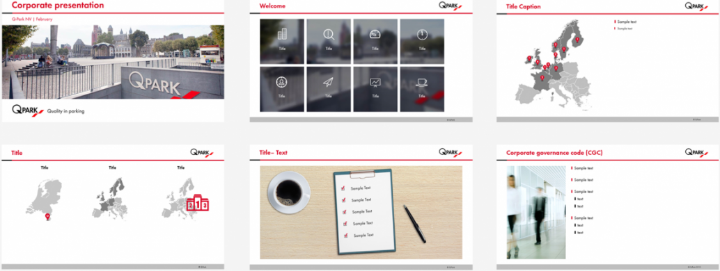 Q-Park contacted us and asked us to develop an impressive corporate presentation which could be used for different target audiences. They sat down with our design team and came up with a design. Everything you see is made entirely in PowerPoint.