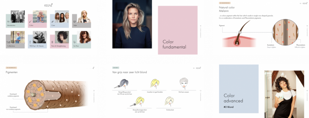 Keune asked us to help them create a presentation which not only looked good but could also be used to give workshops. This resulted in an interactive and visual presentation containing animations which clearly show how their products work.