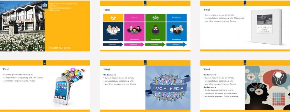 The main challenge was to incorporate the corporate identity into the PowerPoint presentation. The presentation had to conform to the corporate identity guidelines of the Ministry of Health, Welfare and Sport. The presentation also had to be user-friendly and easily adaptable. Our challenge was to incorporate these elements into one presentation.